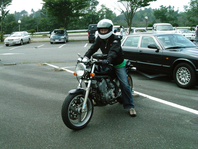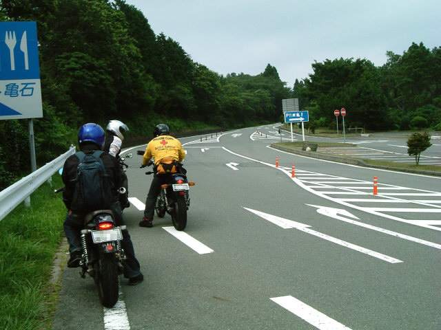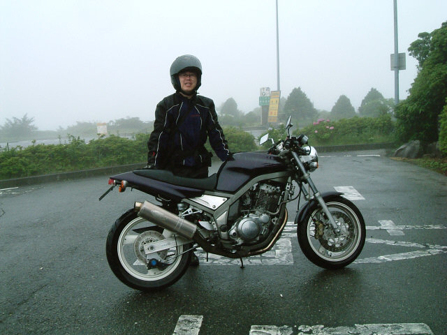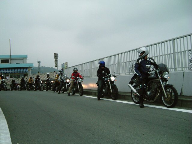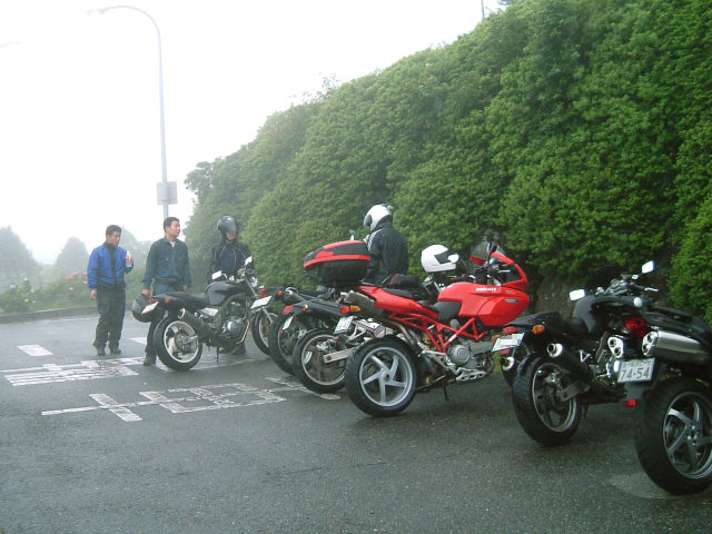 | 天候が回復するまでDennysでだべること約2H。相変わらずの曇り空だけど、gizmo氏が「俺は、行くよ」と仰る。 その漢儀に惚れた約9名が再び椿ラインへ。残りは帰路に着く。 ここで、今回の参加者の明暗が分かれた。 果たして、大観山は、時折、晴れ間が差すまでにコンディションを快復していたのでした。 勢いに乗って、一同はそのまま伊豆スカイラインへ。 ちとクルマが多かったが、暑くも寒くもない、涼風たゆたう、絶好のバイク日和!!! | ||