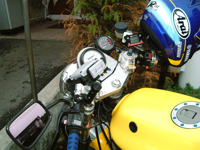 | はるばる長野から来てくださったSAM氏のインターカラー号。合流できて良かった! つねお氏のマシンに装着された二輪ETCモニター機器。まだ何かと制約が多く、機材も無意味に大きいけれど、 もちょっと進化して、早く実用に足る完成度になって欲しい。便利なのは分かりきっていることなのだから。 ちなみに、二輪のユーザーは機器がなくてもETCカードで高速料金を支払うと、ETC割引が受けられる。 リソースは、国土交通省のHPから。(一番下に、料金割引についての記述がありまぅ。) ハイウェイカードが廃止されたことで、二輪ユーザーは割引を受ける手段がなくなってしまったため、 二輪ETC本格施行までの間の暫定的措置だそうだ。 しかし、最近の割引形態は複雑すぎて、料金所の職員もこの件については知らないらしく、 管理人が試してみたところ、ちゃんと引いてくれたのは首都高だけでした。 orz ETCカードは、キャッシュカードを持っていれば、オートバックスの自動作成機ですぐに作れます。 | ||
