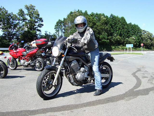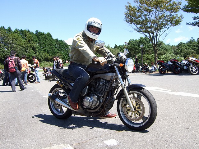 | gizmo氏が手に持っているのは、マフラープロテクタを留めるボルトのワッシャらしい。(マニアックだ!) パーツを提供してくださったイソ氏の灰ムル。帰りに僕のとスワップして走ったんだけれど、 同じバイクなのに、なんでこんなにスムーズなの?シフトもすこすこ入るし…。 orz 峠の茶屋にて、ようやくToshi@平塚氏の合流に気付きました(笑)この方もかなり古参です。 |