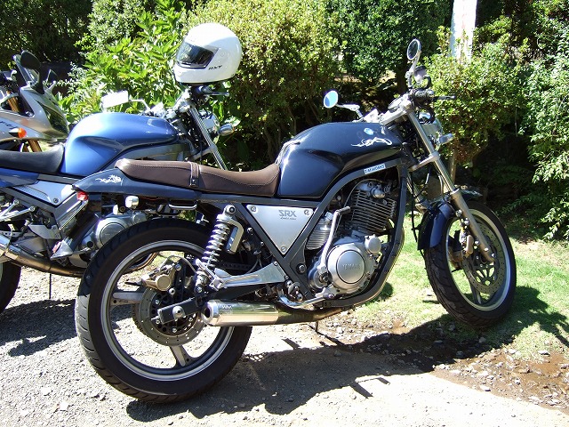 | サクライ氏は一足早くお帰り。いつの間にかOHLINS導入してる…。(これでますます無敵モードに) おぎん氏はGOOSE644に試乗!勇気あるなー。 このマシン、ベース車両抜きでブルターレ一台ぶんくらいのお金がかかってるらしいですよ。 峠の茶屋のパーキング(?)に並ぶ、カラフルな彩のSRXたち。ここでのお昼も久しぶりです。 あっ、小次郎氏のSRXにもOHLINSが〜!!! |