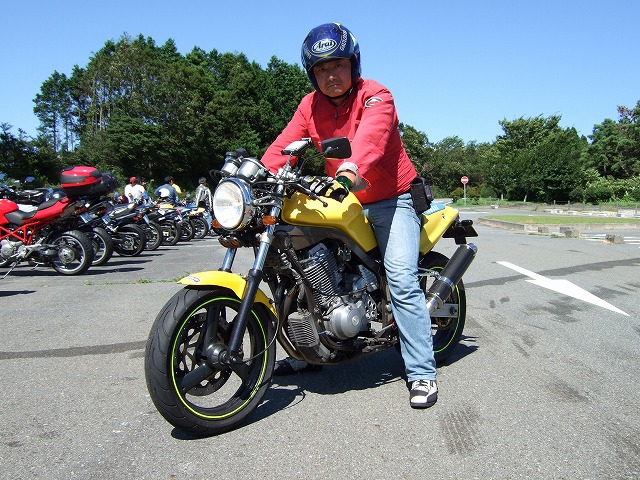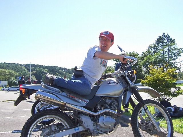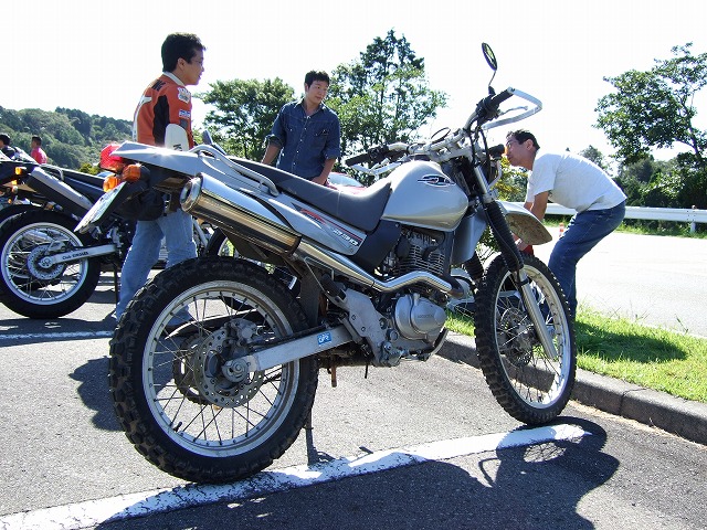 | 塾長ことgizmo氏は、若い女の子を騙してホンダSL230を買わせ…(以下略) あまり人気は出なかったけれど、なかなかスタイリッシュなバイクで、僕はちょっと気になってました。 しかしこの人、お金ないという割には毎回違うオートバイで参加してきます。 (内緒ですが、かつて3,000ccのフェアレディZに乗ってぶいぶい言わせていたらしいですよ。) |