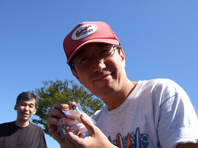| かつて2台のSRXを乗り継いだイソ氏がお土産を提供してくださり、突如じゃんけん大会開催。 エグゾーストガスケットやスタッドボルトなど、弄り派SRX乗りには嬉しい純正パーツたち。 勝ち取った方々は、さすがにいい表情してます。(管理人は何ももらえなかったですが。) |