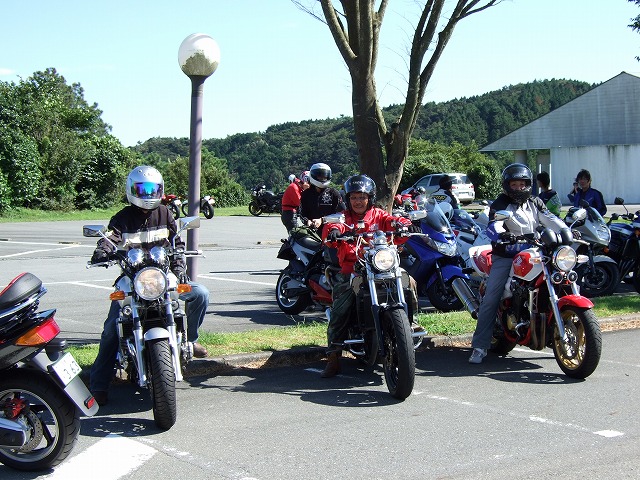 | レンズを向けると、必ずおどけてくれるおぎん氏♪ じまんのみかん色号で、HC号を追っかけまわしていたとか、いなかったとか? 前回は雨の中、亀石まで偵察に行ってくださったくりはら氏。 Serrowにオンロードタイアで、超ツイスティ・ロード最速(笑)を狙う。 こけman氏とそのご一同様。メット越しにイイ顔が見えます。また遊びに来てくださいね。 |