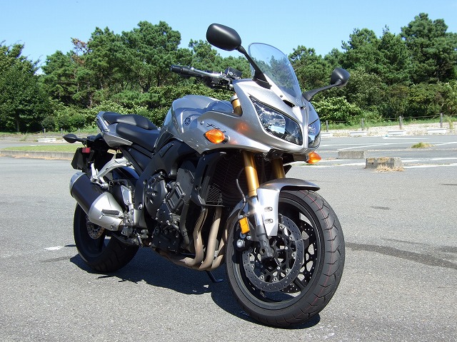 | HIDE氏はFZ-1を初披露。さんざん納車を焦らされたこともあって、相当な思い入れがある様子。 アルミデルタBOX、R1エンジンで150psを誇るモンスターマシンです。 個性たっぷりの意匠を持つハンドル周り。バックミラー越しにオーナーのピースサイン。 |