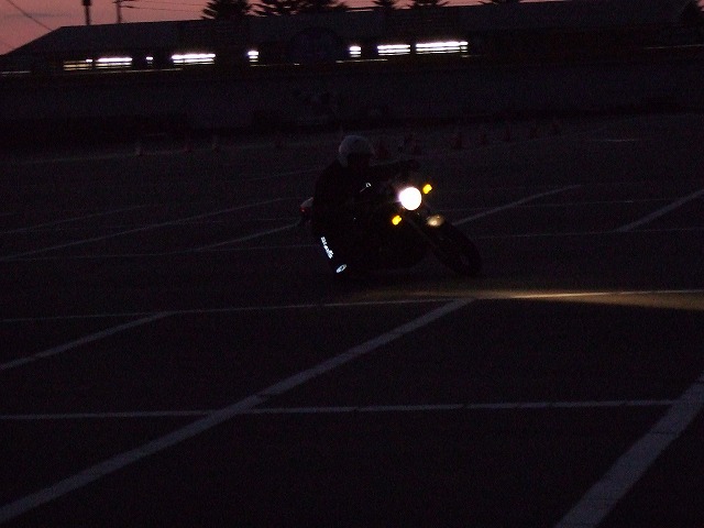 | すすむ氏にはあっさりぶち抜かれ、toto氏にも余裕で突かれまくられるが、 どうにか無事、美ヶ原に到着!でもガスが出てきたので、早々に下界へ折り返す。 草レースでめきめき腕を上げているやっしー氏。大胆にもきんぐじょー氏の前で、華麗な(?)膝擦りを披露。 んが、さすがにここまで暗いとコンパクトデジカメではまともに写らないのであった。 |