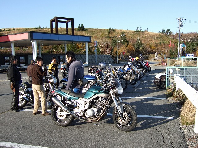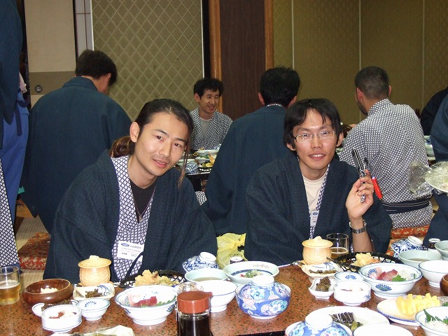 | 思う存分走って大満足の面々。9年物の熟成タイアを履くぢゅくちょにも突かれたよーん(泣) 宿に戻ると既にリラックスモードなちょがん氏。腰に手を当て、上手そうに一服。 白樺湖水源荘の豪華な食事。これだけのボリウムで一泊8,000円はお値打ち…だと思う。 |