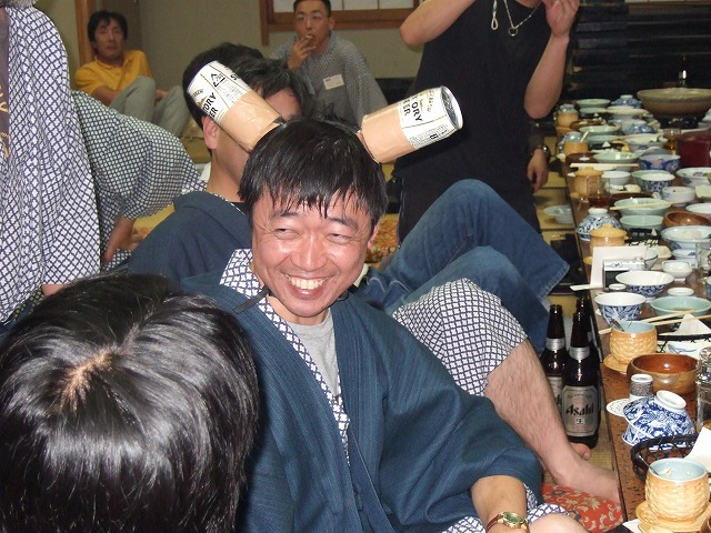 | プライベートモードで公開しようと思っていた宴会風景。 でも、みんないい表情なんで、載っけちゃいました(笑) 自らが出品した缶ぽっくりをGetしてハッチャケまくりのキングジョー氏。 子供に「ほおら、ミッキーさんだよー。」とアピールしたら、「こんなミッキーさんいやー」と、 泣かれちゃいそう。(すみませんすみません別の人格出さないでください) |