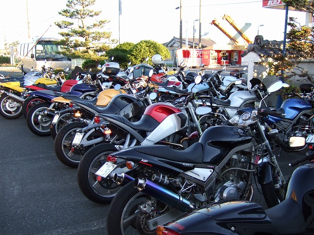 | おなじみ、キャブ仙人殿のセッティング相談室も、そろそろ恒例になりつつあります。 参加者の中には、ディーゼルエンジン搭載のバイクも混じっていたようで…? 実にバラエティに富んだカラーのSRXたち。写真で見ればただの黒でも、 純正カラーじゃなくて、こだわりのオールペンなんだぜ。 |