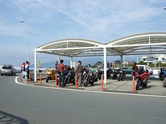 | 今回、常連組の大半がお休みだったんだけど、 初参加とか二回目くらいという方がたくさん来て下さって、西湘PA出発時点で合計16台という、 にぎやかなツーリングとなりました。 爆音系のSRXもいなくて、とってもマナーのよい集まりだったと思うのですが、どうだろう? 給油ポイントで、窓ガラスに映ったそらいろ号がなンかいい感じだったのでぱちり。 |