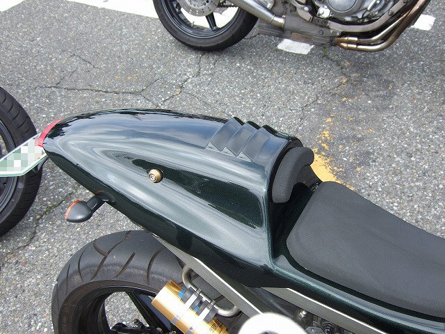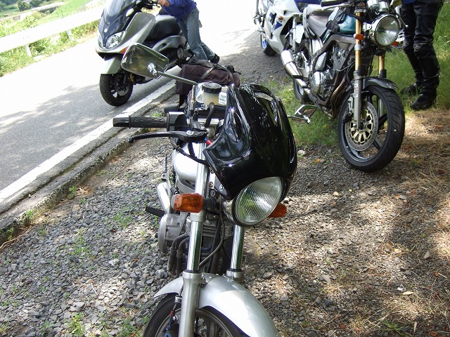 | ケニー・シニアをモチーフにしたオリジナルヘルメットは、XJRで参加のSABON氏。SRXのファンです(笑) 歓談中の参加者たちを他所に、makoto@管理人は、LSD氏とランデブーで初夏の伊豆スカをひとっ走り。 2年ぶりの復活を果たしたそらいろ号は今日も好調だ。 「初期型であのペースで走って、リア振れませんか?」とマジ顔で聞かれて、ちょっと嬉しい。 でもぜんぜんヘーキです。a.s.h.のフォークoil(粘度は#40。通常の12.5G相当)とO/HしたばかりのWP。 更に、おにぅのBT45様で武装しているからね。 |