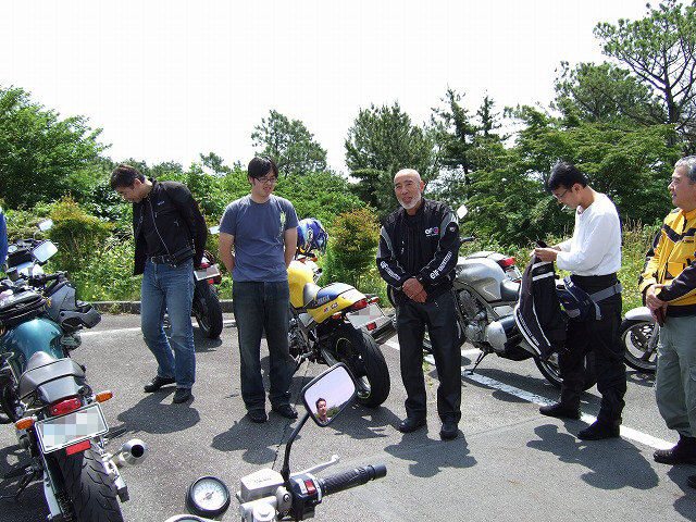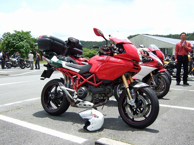 | 亀石でお会いしたDUCATI.netの方々。ムルティ、いいバイクだったなあ…(遠い目)。 イタリアンでぺペロンチーノでカルボナーラな三色ムルティは、jonman氏の愛車です。 おなじみ峠の茶屋で席待ち中のひとコマ。左端の方の表情に注目(笑 全国オフのじゃんけん大会で、見事Simpleさんのなんでも券をゲトされたLED氏。 悩んだ挙句、オリヂナルの3型ハーフカウルをチョイスされたようです。 |