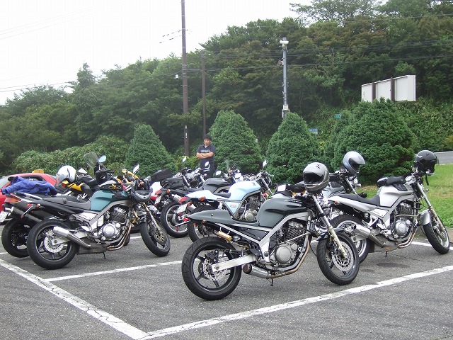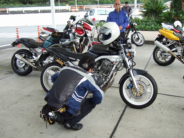 | 麓のGSでガスを補給し、お馴染みの椿ラインへ向かいます。 前回のように、バスやレッカー車に前を塞がれないうちに、早々に出発しましょう。 大観山PAにて。都内ではありえないSRXの群たちの図。一台、えげつないビクスクが混じってますけど(笑) ま、昨年までは管理人もSRXじゃなかったしね。 |