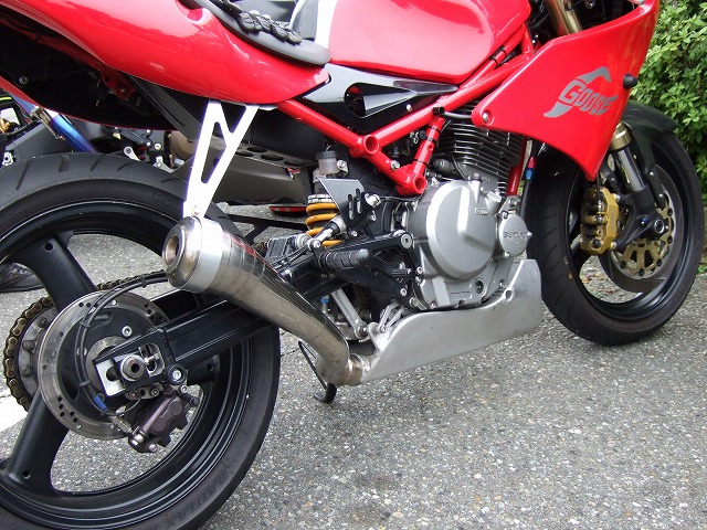 | 唐突に復活を果たしたgizmo氏のルーソ号。フレームが妙にびかびかです。 エキパイもマフラーもびかびかです。ウェアもお洒落。一流メーカーのブーツで足元を固め、 とてもBlogで経済状態の悩みを訴えておられる方には見えません。 寅楠氏の漢のヘルメットに漢のスイングアーム。この黒さを、北九州の某氏の頭頂に(以下略 このステッカーをメットに貼る勇気は…、僕にはないなあ(笑 |