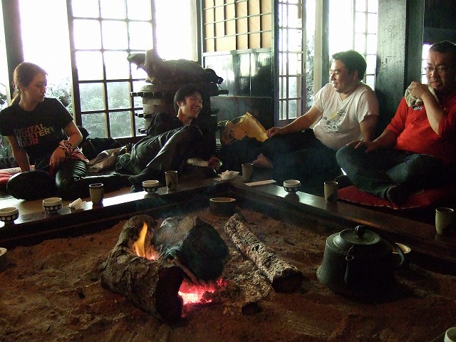 峠の茶屋で通された部屋には、残暑だとゆうのに囲炉裏に火が入っていた。