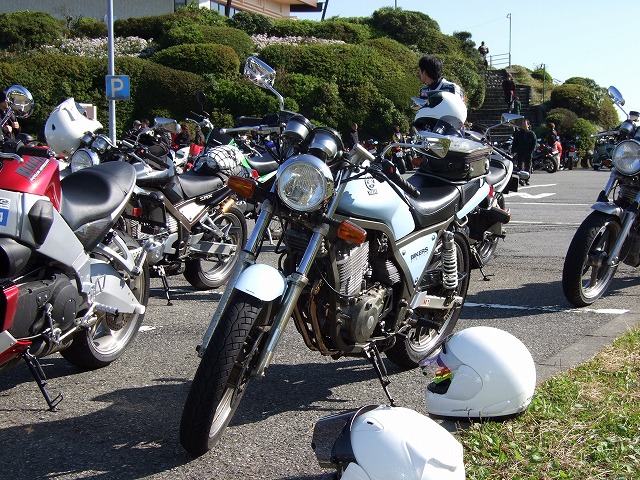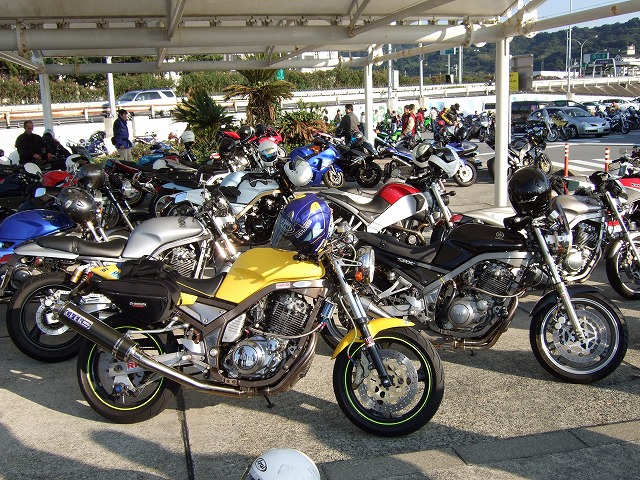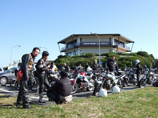 | 湯河原PAで行われていたNap'sのイベントに帰りになんとなーく立ち寄ると、ビッグなサプライズが! すすむ氏が「makotoさん、makotoさん。一条さん、一条さん。」て。はい? なんと、初期型SRX(1JK)のプロダクトデザインを手がけた GKダイナミクスの一条 厚氏にお会いしちゃいました。2004年の全国オフ以来、3年ぶりの邂逅です。 「新しいV-maxは開発が遅れててねぇ…。今どきのバイクは速すぎ。またシングルを造りたいよ」 なんてことをしみじみ仰ってました。 ここで、33氏、ちー氏、だる嬢、harada氏とお別れ。本日もお疲れ様でした。 お家に帰るまでが遠足ですよ〜。 | ||
