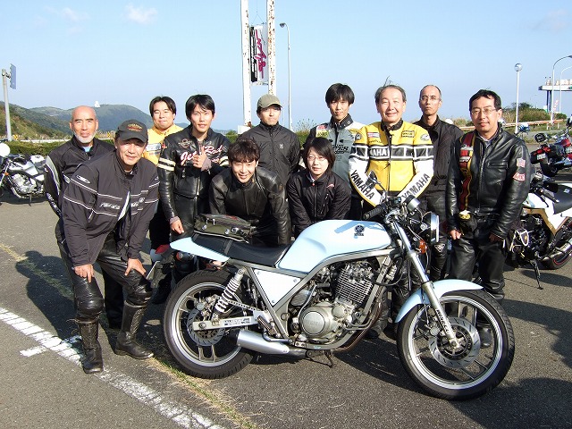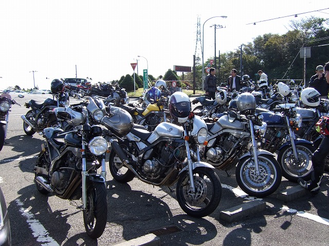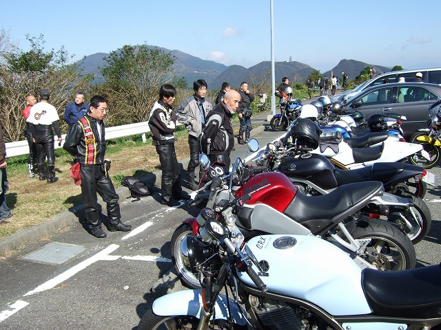 | 「もう10月も下旬だし、寒くなりましたねえ。」なんて話していると、還暦の小次郎氏がひと言。 「なんだ若いのに。俺なんかメッシュだけど、ぜんぜん平k…、ぶあーくしょ!」 一同大ぶわくしょ!(爆笑) いやー、これだけの台数が集まると、全国ヲフみたいだよね。 < まだDNSを根に持っているらしい | ||