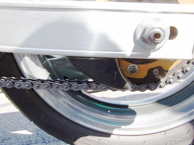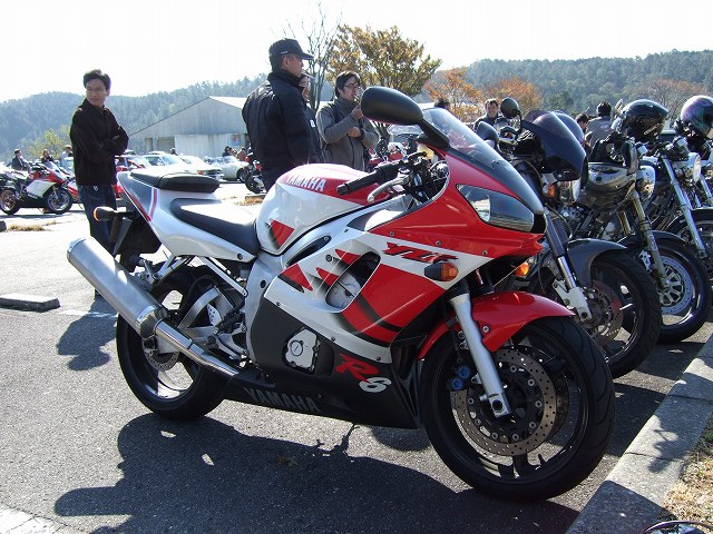 | AOKI氏が隠し持っている(!?)R6ですが、実車を拝見するのは初めて。 makotoさん的には、現行R6よりこっちの方がヤマハらしくてデザイン的に好みだなあ。 キレイな緑色のマシンはCBS氏。遥々中部man3からThe Simple氏と共に遠征。 そのSimple氏から、じゃんけん大会用にと非売品のカーボンチェーンカバーを提供していただきました。 重ねてありがたや。 | ||