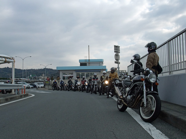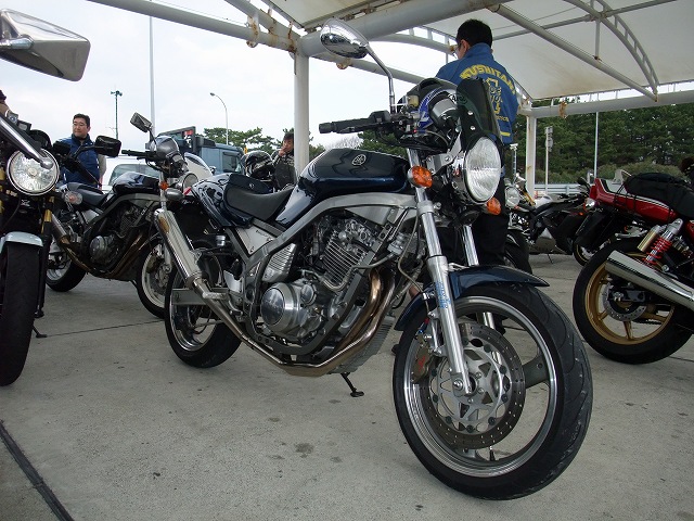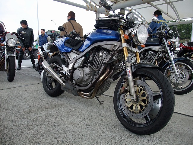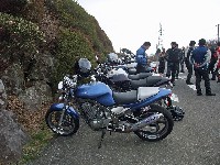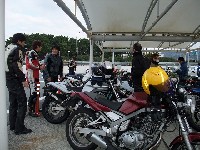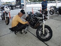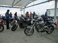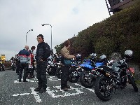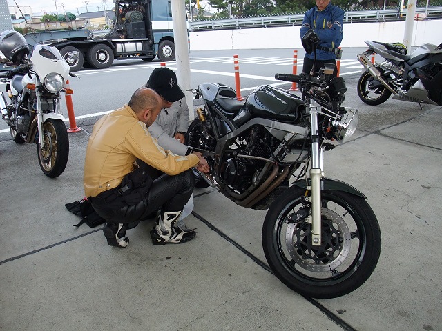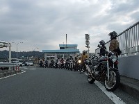 | 不況の影響もあり、今年は参加者が減るんじゃないかなーと心配していました。 でも、集合時間30分前には、多数のビッグシングルが西湘PAを占拠。 久しぶりにお会いする常連の方、初参加の方。今年も宜しくお願いします。 ベン太郎氏、朝からマシンの最終チェックに余念がありません。そいえばエア抜き上手く行ったのかな? |