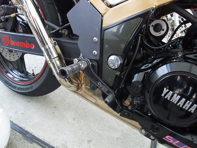 | toto氏の連邦の白いの号のステップ周りの写真。(←の、多いな) 試行錯誤を繰り返した結果、結局、ノーマルとほぼ変わらない位置に落ち着いたそうです。 こうぞ氏のFCRには加速ポンプ調整機構が。詳しいお話は聞けませんでしたが、興味ある人も多い筈。 お時間のあるときにBlogで解説&インプレなど書いてくださると嬉しいです。 |