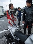 | ありそでなかったすすむ@BUELL氏とtoto@連邦の白いの氏のツーショット。 toto氏の肩の竦み具合がいかに寒いかを物語っています。つか彼はこの日ずっとこのポーズでしたw 奥から、ko-ji氏、nakamura氏、tomo氏のヴェテラン組。 |