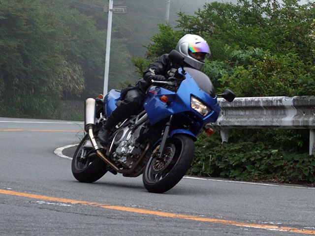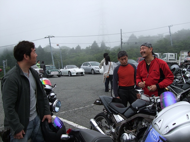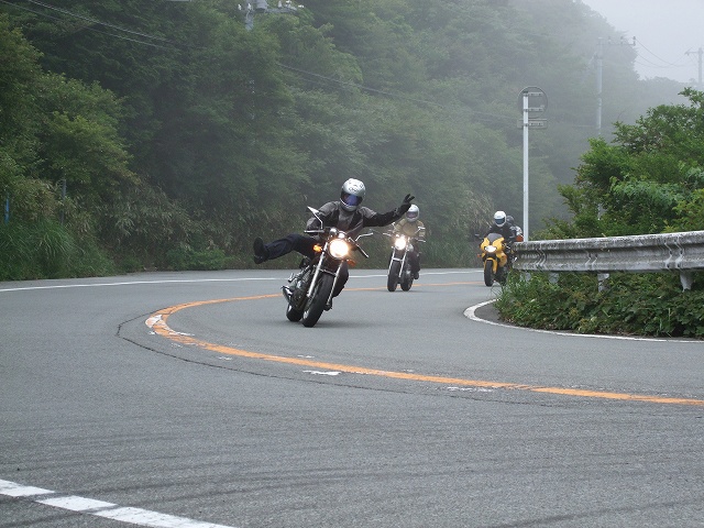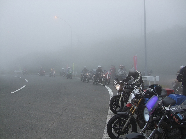 | 結局、伊豆スカもほぼ全線ガスっていて、一同、慎重な走行に徹することとなりました。 makotoさんはほぼ最後尾だったから、前の方がどんな悪逆非道を働いていたのかは知りませんけど、 たぶんみんなイイ子にしていたと思います。その筈です(笑) |