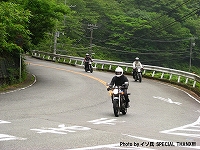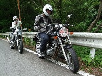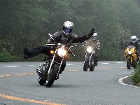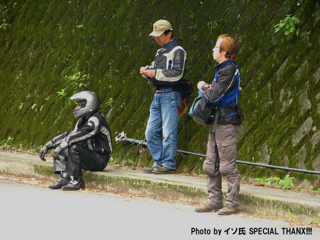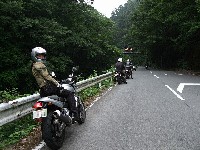 | 椿ラインの麓で、遅れてくる給油組を待つ先行組。 をお?をおおお!? ムルティ乗りのイソ氏がムルティじゃない! 敢えて泥沼に足を踏み入れる猛者が、また一人ここに誕生しますた(笑) |