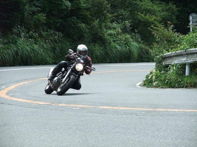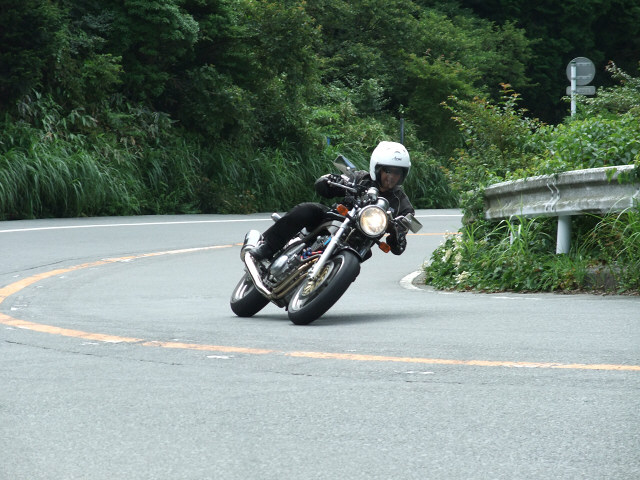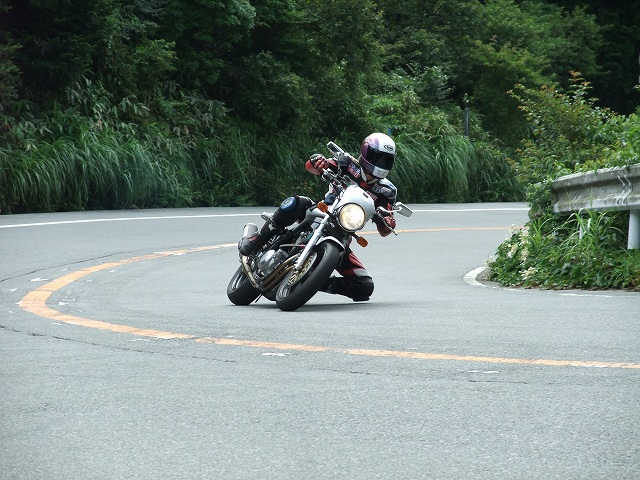 yoneya氏(?)の走りは、スムースなライン取りのリーンイン。