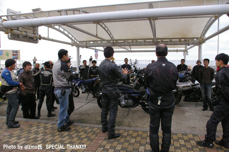 | 今回も、たくさんの方が集まってくださいました。 メンバーがお友達を連れてきてくれたりするので、最近はSRX以外のバイクも増えてきてます。 SRXより勢力が増してくるようだと困っちゃいますが、今ンとこその心配はなさそうだし、 あんまカタっ苦しいの嫌いなんで、でんでんOK(笑) 出発前のブリーフィング。makoto@管理人の言うことが毎回ビミョーに変わるのが恒例w んで、テンパって噛みまくるのも恒例 orz |