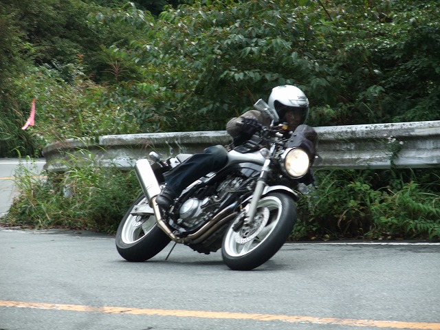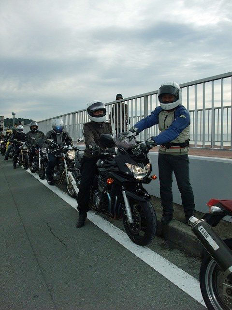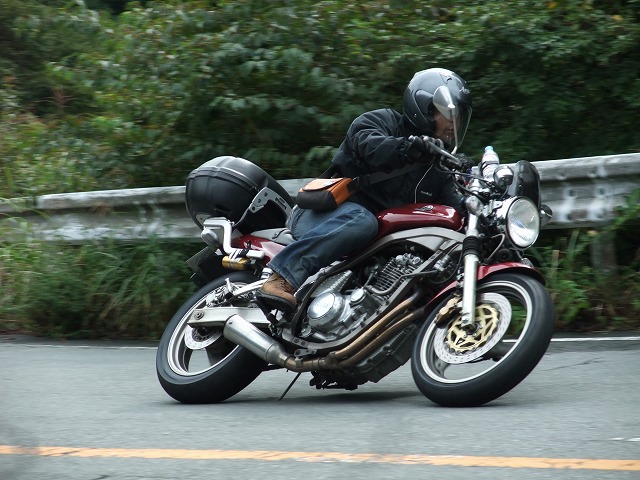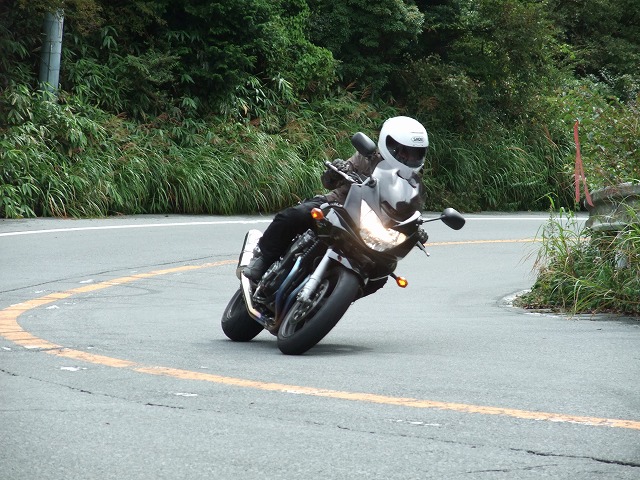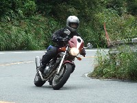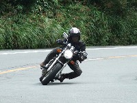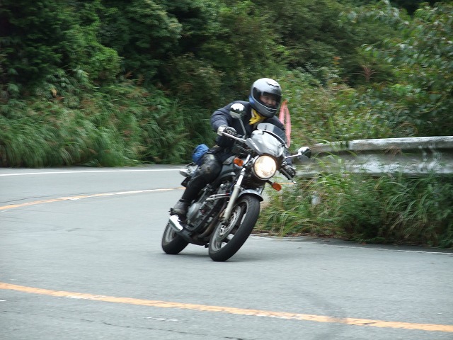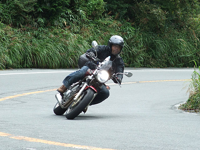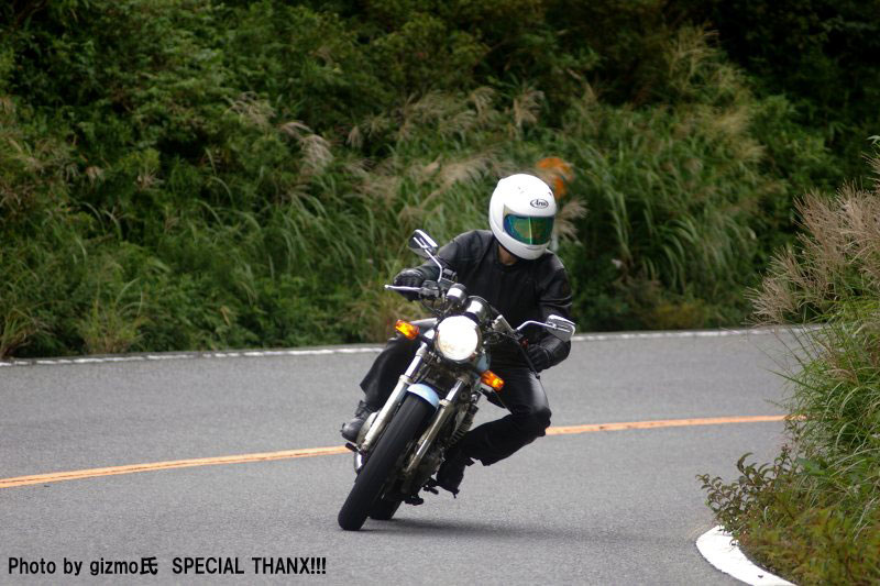 | 何台所有しているか本人も良くわからない(んなことないと思うけど)と噂のバイク餅氏。 サンデーレーサーでもある氏のライディングフォームは、さすがにナチュラルで美しい。 ご友人のBandit1200氏。良いバイクなんです。(しつこい) こう見えて(?)二児のパパであるtaka氏。待望のニュータイア投入で終始ご機嫌でした! |