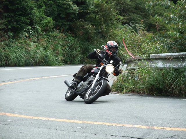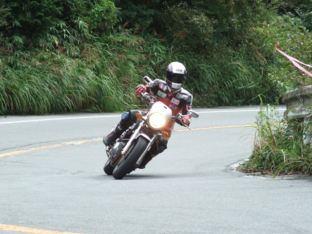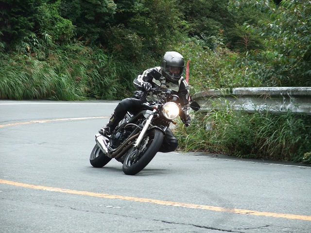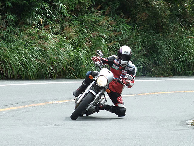| 最年長の小次郎氏が先頭でバンク角も一番深い(笑) アウトから様子を伺うサクライ氏。春の転倒から早くも復活!おめでとうございます! そして、二人のバトル(!?)を特等席で観戦しているのは、ヨネヤ氏…かな?。 皆さんオトナだけど、ちっとも大人しくはありませんw 関東屈指の長距離弾道砲、ko-ji氏。チタンコートが輝くフロントフォークがフルボトムしてます。 Sassy氏。さっきもお会いしましたね?わざわざ撮影ポイントまで戻って再アタック! |