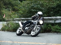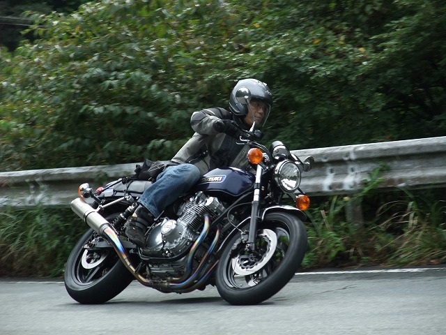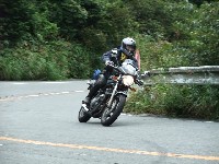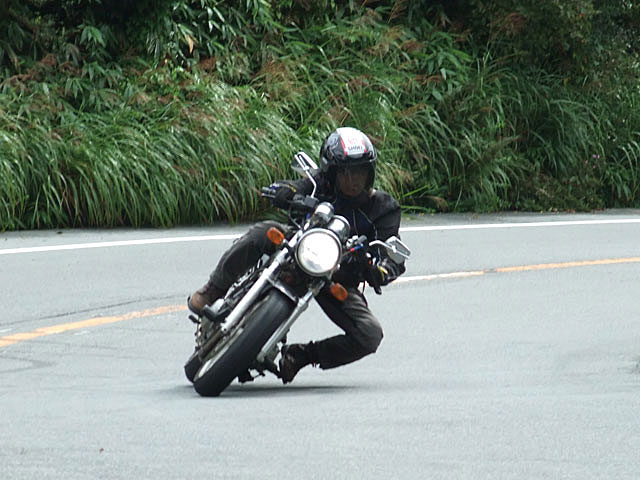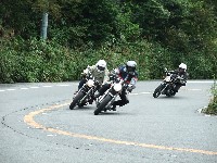 | こうぞ氏は某二輪雑誌のライターさん。お仕事抜きのプライベートで度々参加してくださいます。 変態系サンメカ不動の東横綱、GS1000を駆るまめしば氏。いやあ渋いしカッコいい! 僅か20psのボルティで果敢にそれを追う(?)、中ー馬っ鹿氏。 ところで、レポートに一度も名前が登場していない方は、 管理人が顔とマシンと名前を一致できてない可能性が高いです(汗) man3 BBSでカムアウトしてくださると嬉しいかも?w |
