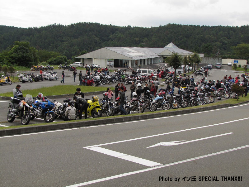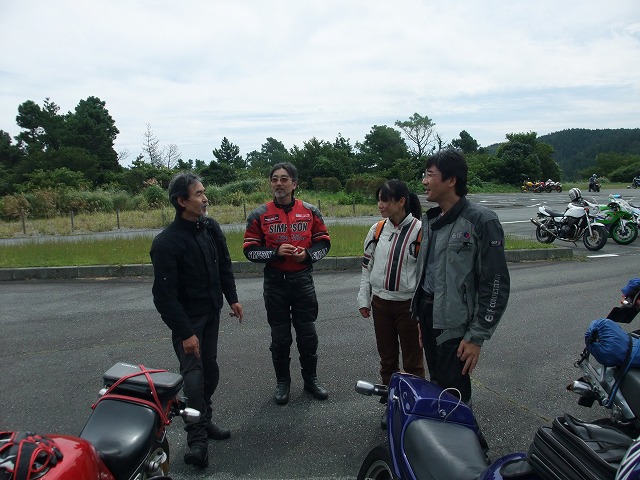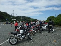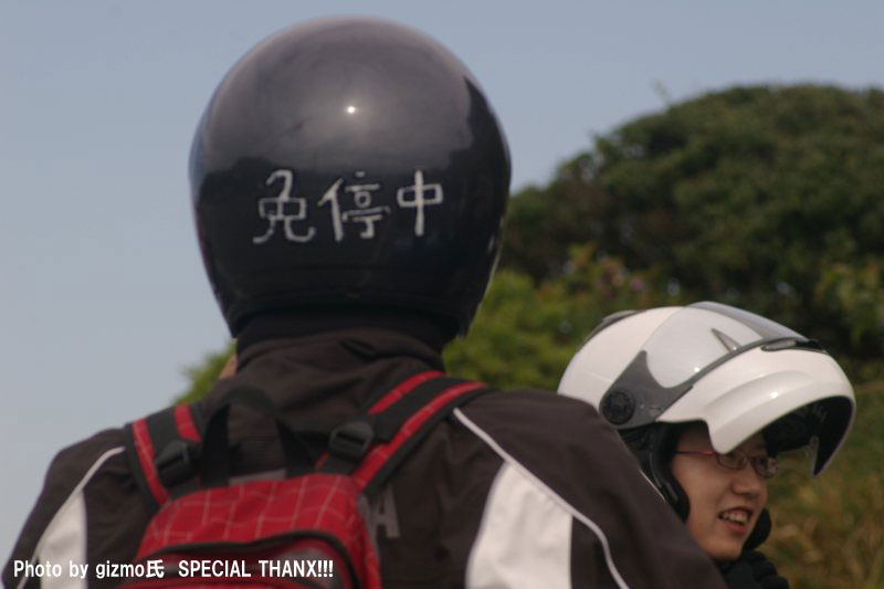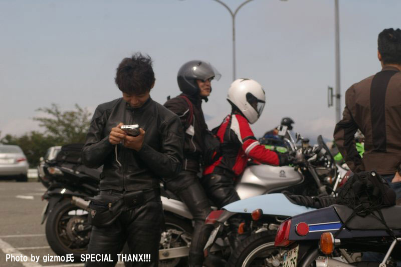 | ちーさんだるさんコンビは、訳あってタンデムでのご参加。 ネズミ捕りで免停なんて、僕ならクサッて厭世感に苛まれちゃうところだけれど、 経験から学び、伝え、そして、ユーモアにすらしてしまうちー氏の姿勢には感服します。器が違うわ(汗) 傍らには、先ほど撮影した写真をチェックしつつニヤけているmakoto@管理人の姿がw |