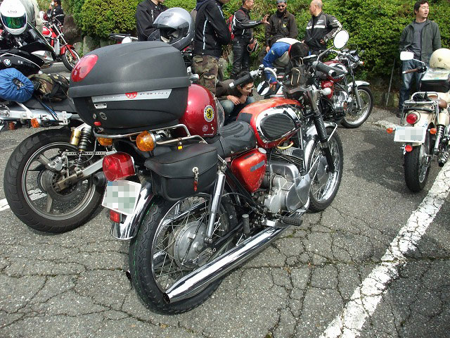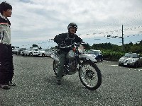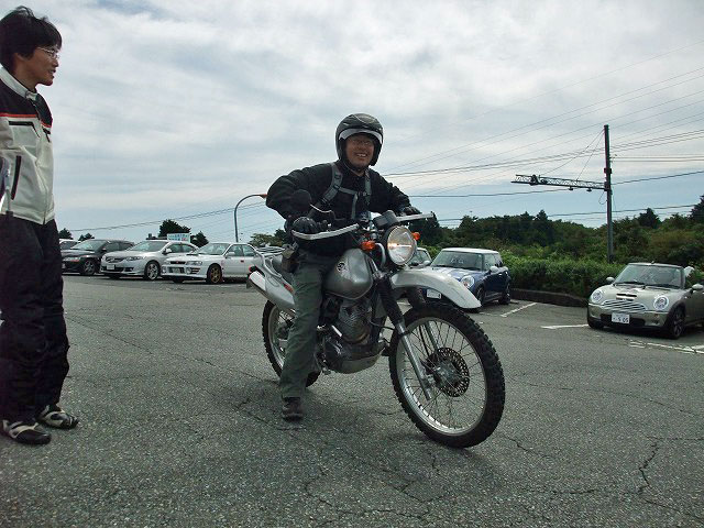 | オフ用メットがトレードマーク(?)の33氏。冬にモーグルで負った怪我もだいぶ癒えたようです。 自作の右二本出しサイレンサーはnabe氏。これまた自作の何とか風何とかバルブ、付いてますw 待ってましたの足出し走法はイソ氏。撮り逃さなくて良かった〜w |