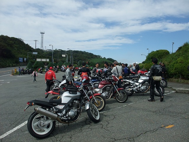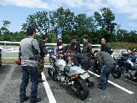 | SRXがなかなか仕上がらず、Buellで参加のすすむ@埼玉氏。罰としてピンボケの刑です(違) …とかなんとかやってるうちに、第二集合場所の大観山PAに到着。 キャブ仙人こと永冶 司氏のご紹介で、Zeppan Bikes編集部のつちやま氏がいらっさってました。 「昨年、中部man3を特集したので、箱根man3も取材したいんですけど…」 「まjっすか!?」 |