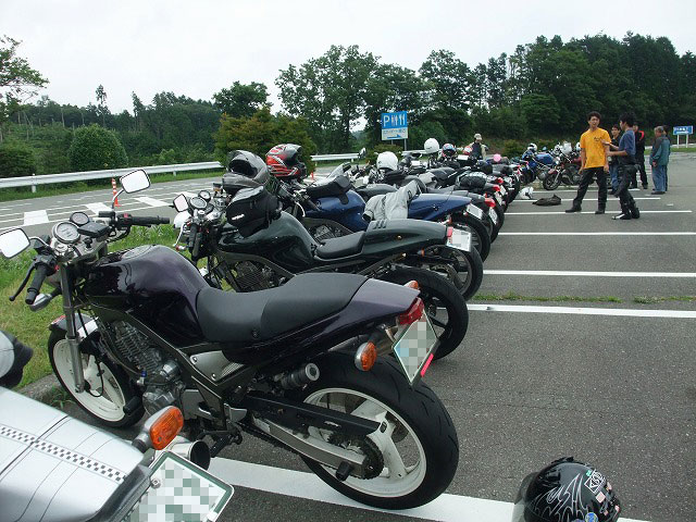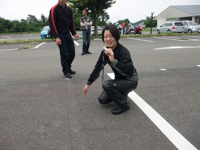 | 今回は走行写真はありません。ごめんなさい。 椿で事故があったらしく、おまわりさんがコーナーで怖い目をして見張っていたのです。 先行したmakotoさんは、Uターンして後続に「ペース下げてね」ってアピールしたつもりだったんだけど、 後で聞いたら、だーれも意味が分からなかったらしい…orz きーくんはお友だちに絶賛土下座中w なんでも、以前取締りの情報を教えて、免許を守ってくれた大恩人なのだそうですwww |