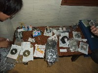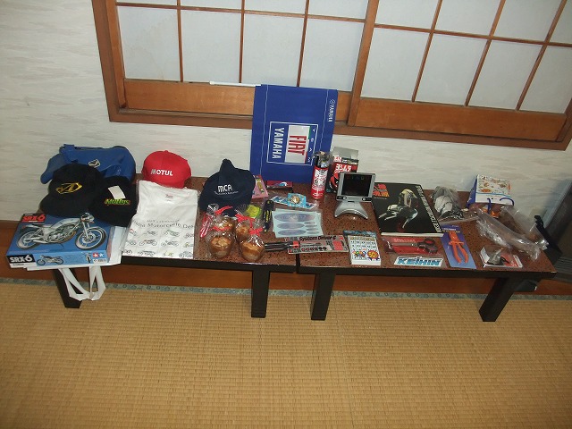 | こちらは、部品争奪じゃんけん大会用の品々。 意中のパーツに名前を書いた付箋を貼り、欲しい人同士、じゃんけんで当選者を決定する。 欲しい人が現れなかった場合、出品者が持ち帰るルールw 使い道に乏しいものを出品した人は結構どきどきだったりするwww |