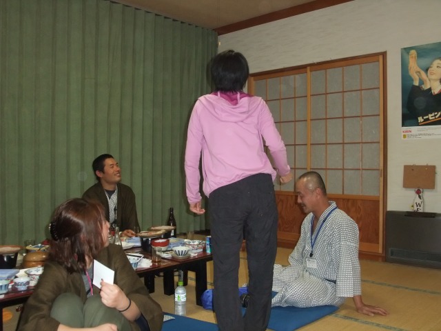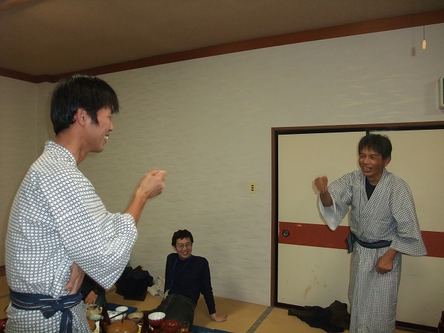 | こちらは何を争っていたのか失念。 関東組の古参3名が立ち上がった瞬間、何故か拍手喝さい。ヘンなテンションで盛り上がるwww バトルはgizおぢさんが貫禄の勝利。 |