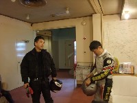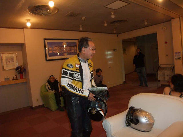 | 翌朝、目覚めてロビーに下りると、トラとレヲがいた。 してやったりのドヤ顔。徹夜で下道を走ってきたそうな。頭わr…www ややあって、一条さんも起床。まさかの朝連参加! |