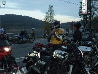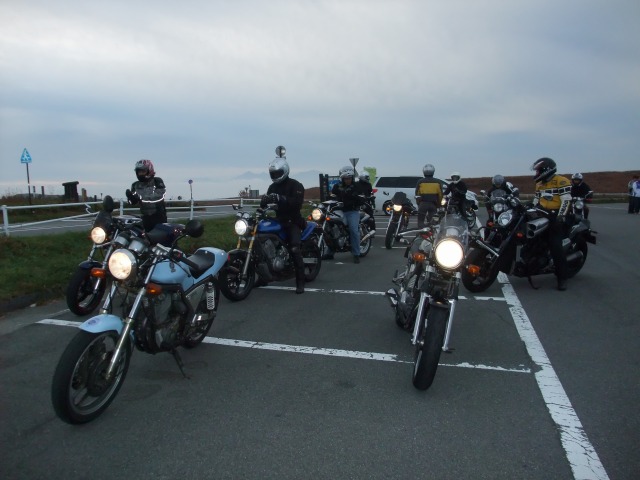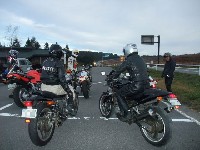 | あうんの呼吸といいますか、参加者同士、空気を読みあって出発を促しますw 例年に比べて暖かかったこともあり、結構な台数になりました。 僕の前方にはゲロい組。僕も含めて、後ろはマイペース組? レポで大げさに書かれることが多いので、よほど飛ばしているんだろうと誤解している人がいるようですが、 各自、それなりに、安全マージンをとった大人の走りをしているんですよ?(たぶん) | ||