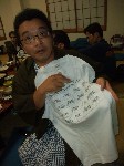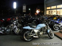 | SRXの産みの親の一人、GKデザインの一条さんより出品されたTシャツに群がる皆さん。 プリントされたヤマハの名車たちのイラストは、一条さんご自身の手によるものだそうです。 こいつをGETした幸運な漢はogin@湯煙亭主人氏。 |