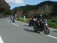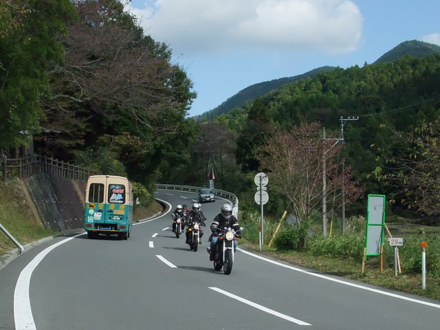 | 先導の僕がちょっとでもアクセルを開けると、後続との距離がみるみる開いていくような状態でした。 そこまで自粛しなくてもいいのに…? 皆さん、ベテランばかりですからね。無理せず、自分が愉しく走れるリズムを心得ている筈。 下手な千鳥走行でストレスを溜めるより、それそれが心地良いペースでリラックスして走るのが、 いちばん安全なんじゃないかなと個人的に思います。 |