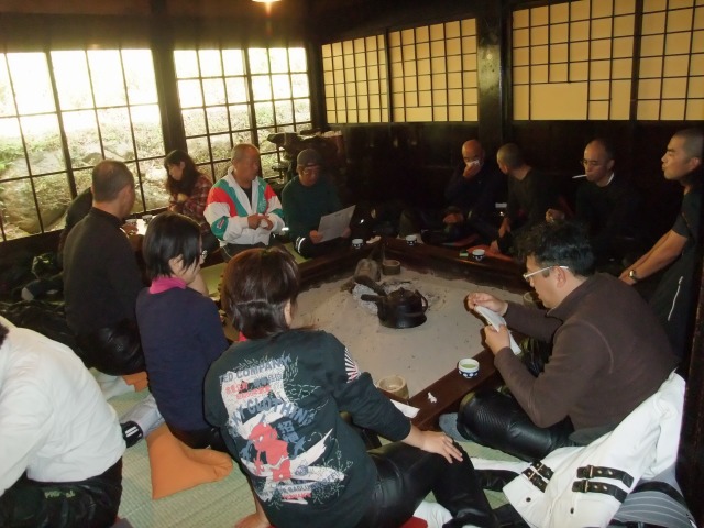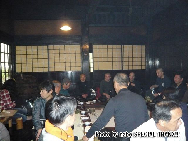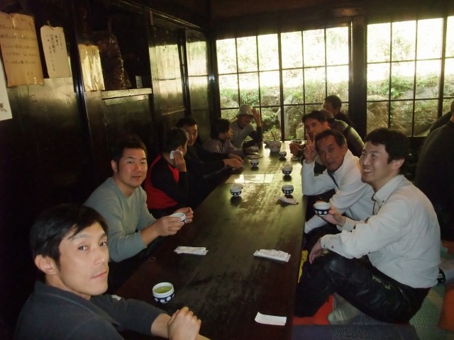 | man3ご一行さま、ご案内w 茶屋はお店のキャパがそれほど大きくないので、人数が多いときは遠慮しています。 本日は26名。充分多いですか。すみません。 「え、まいどばかばかしいお笑いを一席…」と落語マニアの33氏。 ですが、噺すのは専門外らしいですw 夏場は暑くてクレームが続出(?)した囲炉裏端の席だけど、季節的に丁度良くなりましたね。 |