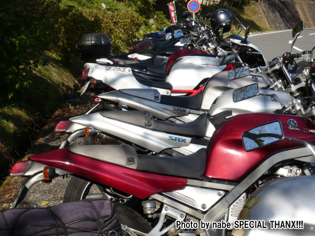 | makoto@管理人は、ちーさんのIV型SRXと交換試乗。手前の銀色のマシンです。 エンジン、足回りがどノーマルでリアサスが抜け気味ですが、その乗りやすいことと言ったら! 仮に僕がIV型オーナーになるようなことがあれば、車体コンディションだけきっちり整えて、 外装だけそらいろに塗り替えて愉しみますよ。たぶんw 追い越し可能区間で前の遅いクルマを抜いたとき、 その更に外側から痺れを切らした他のグループのGSX-Rが“ばびゅーん”と抜いていった。 追っかけていったのは、現役SRX乗り最年長のあのお方だけだったりしてw でも、今回は皆さん、もんのすごいスローペースだったんですよ。 |