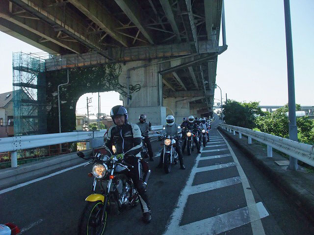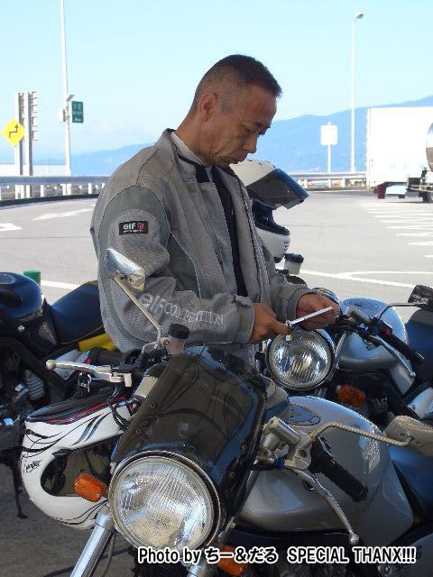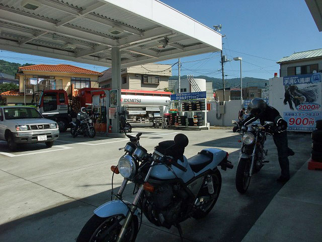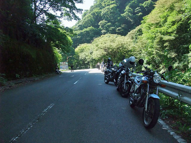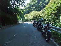 いつもガソリンを補給していたセルフ給油のENEOSが閉店になってましたorz 本日最初のワインディングを前に精神統一中(?)の面々。 |