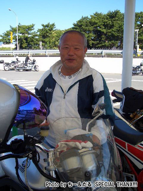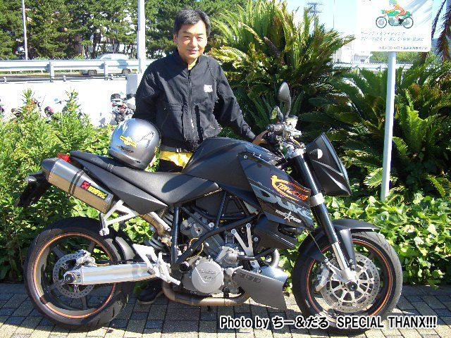 KTM SuperDuke990のMAKOTO氏。 つねお氏はマシンもウェアも原色系の明るいカラーリングがお好き。 地味に(失礼)高い参加率のヒロタ氏。 |