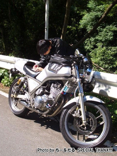 ふだんはSSで奥多摩を走り回っているとゆうオギ氏のマシン。 SRXでお会いするのはひさしぶりのけんさん。 |