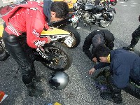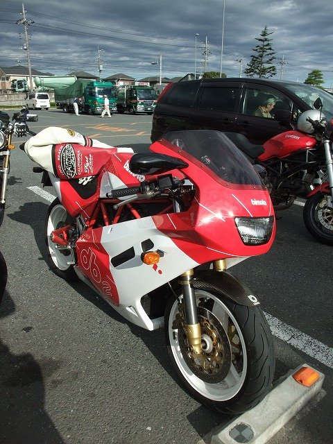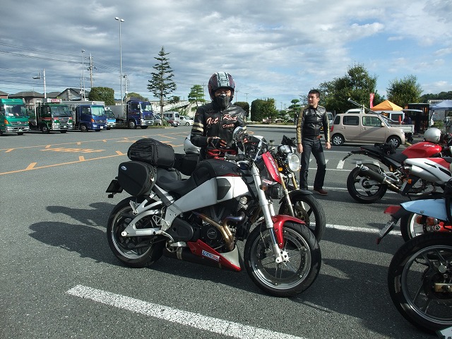 関東下道組の集合は、例年どおり、道の駅ちちぶです。 昨日、車検通したばかりのBimota DB2でどた参の不死鳥@toto氏。 車検を担当したすすむ氏。(今年は遅刻しなかった) |