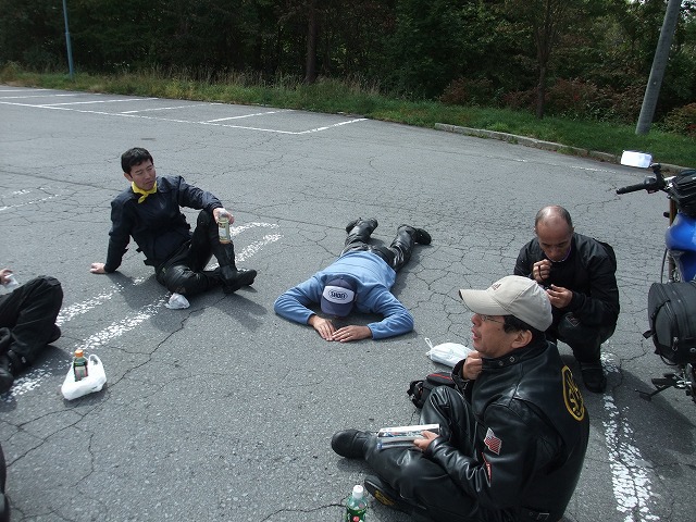 しかし、消耗しなかったかと問われれば、割とそうでもないようでw ほぼ修行の様なルートでした。若い時にオフ車に乗っていて良かった・・・・(nabe氏談w) そして、関東下道組が宿にいちばん乗り。かつてない出来事。 |