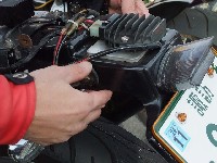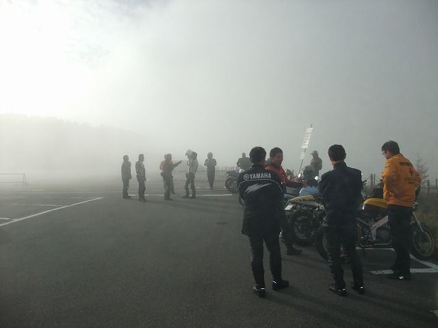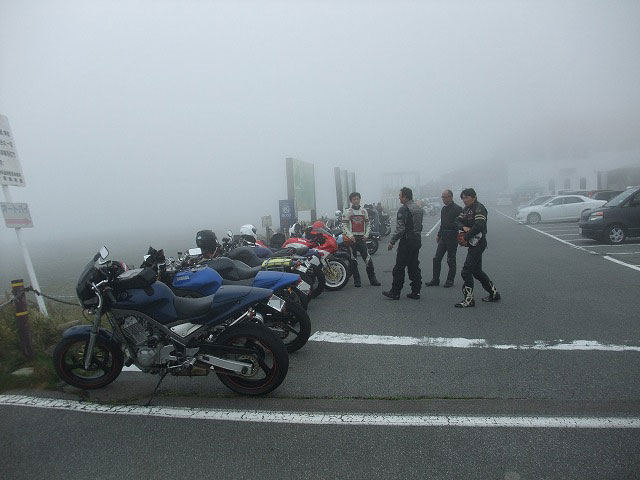 ビーナスラインは全長30km近くあり、標高差も激しいため、全線で快晴てことはあまりないです。 折り返しで宿に戻ろうとしたら、SAM氏のマシンのフェンダーがぐらんぐらんになってますよ。 |