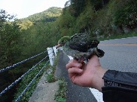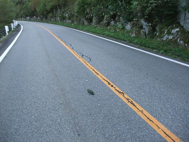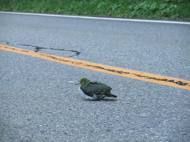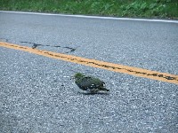 ところで僕は、さっき通過したときに道の真ん中に落ちてたこれが気になっていたんだ。 近づけば何処かに逃げていってくれると思ったんだけど…、 なんて名前の鳥だろう。知っているひとがいたら、教えてください。 |